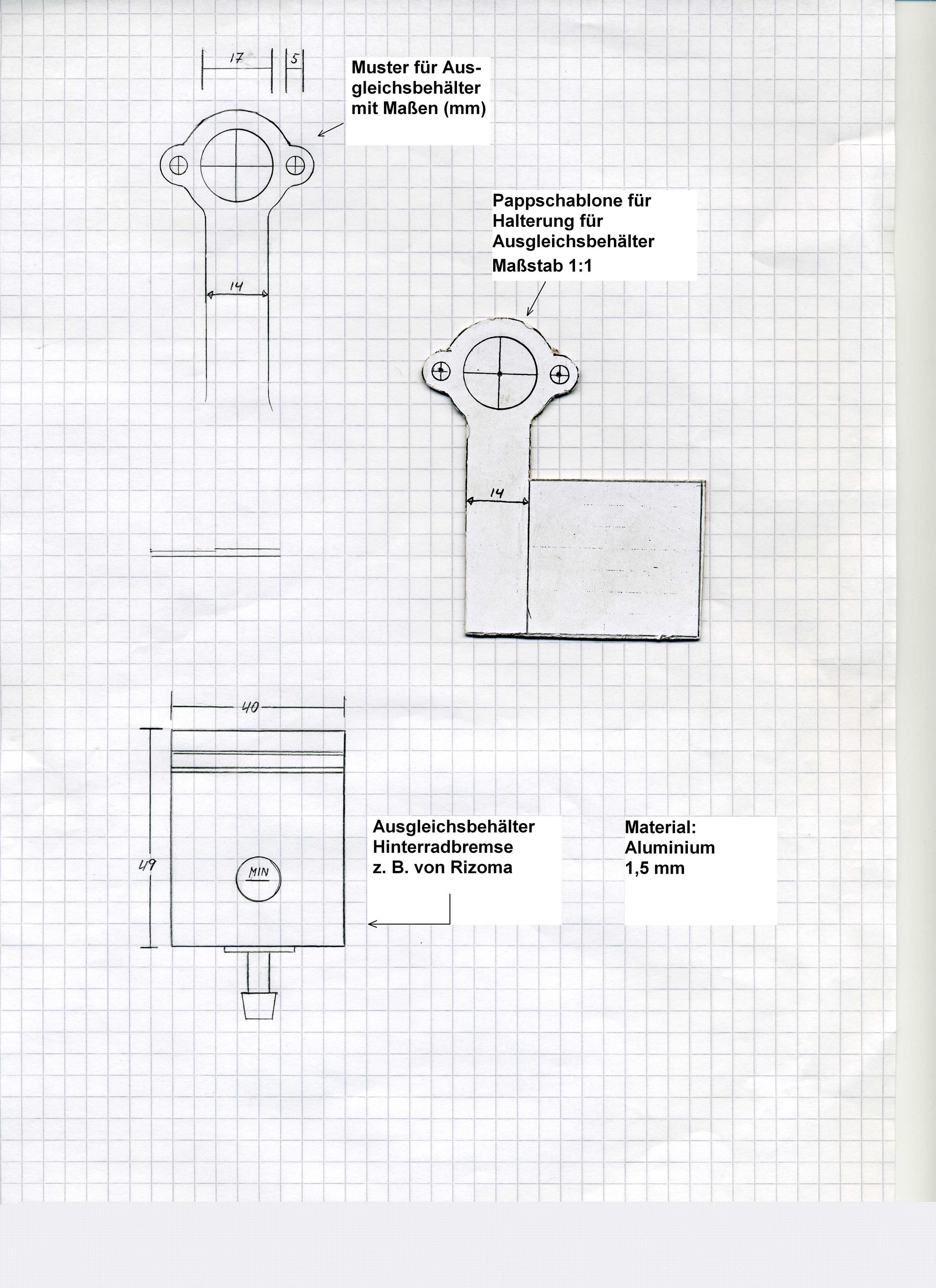 Schablone für die Halterung für den hinteren Bremsflüssigkeits Ausgleichsbehälter.