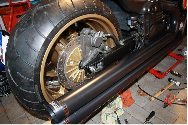 Cool sieht die Modifikation des Bremsankers schon aus, aber einfacher wird es dadurch bekanntlich nicht. Ein Wechsel des Reifens oder der Bremsbeläge – bisher durchaus alleine zu bewältigen – wird künftig um ein vielfaches schwieriger und Du wirst mit hoher Sicherheit eine zweite Person benötigen. Die Bremsentlüftung wird auch zu einem mittleren Abenteuer. Also: Dieser Umbau ist wohl zu überlegen!