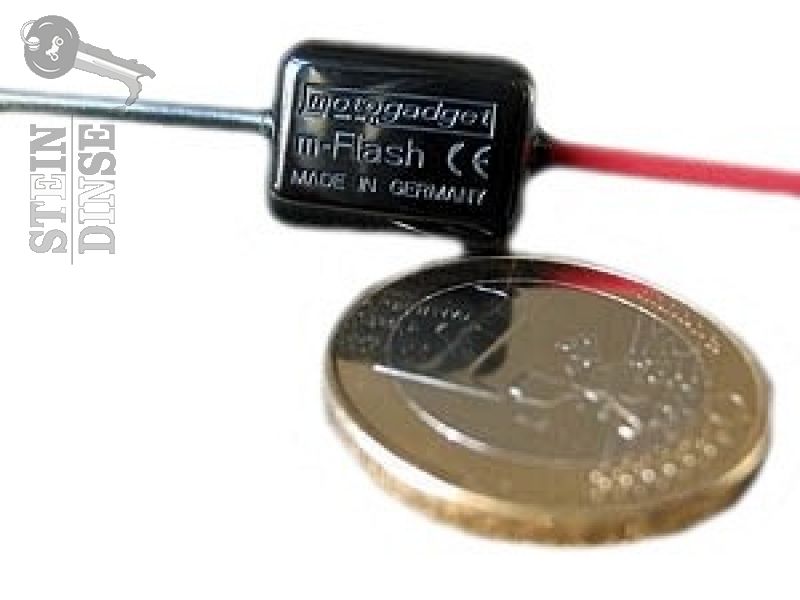 Das m.flash besitzt keine automatische Abschaltfunktion. Diese Funktion besitzt der m.stop von Motogadget.