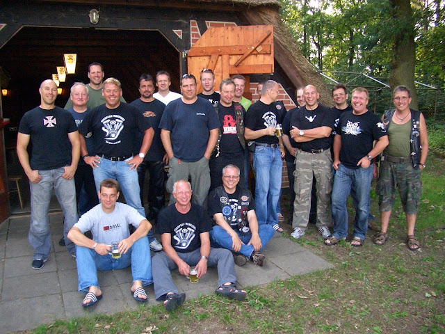 Nicht nur die Gefährte der Teilnehmer sind recht selten und exotisch sondern auch die Umstände des Treffens. Die Teilnehmerzahl ist aufgrund der wenigen Bikes dieses Typs klein aber pendelt konstant um zwanzig Personen. Die meisten Warrior-Fahrer treffen sich wegen der geringen Verbreitungsdichte hauptsächlich online oder eben auf diesem Treffen und so gibt es keine Unterstammtische, Clubs, Chapter oder andere Grüppchenbildung wie bei vielen MC oder IG Parties. Die Partylocation wechselt jedes Jahr aufs Neue. In diesem Jahr traf man sich im Hotel Heils in Ventschau bei Lüneburg. Das Hotel ist sehr schön und abgelegen und dazu noch Besitz der Familie von Teilnehmer André. Und so war die Stimmung von Anfang an sehr vertraut und ausgelassen. Nach den Freunden aus der Schweiz kam direkt am Freitag der Großteil angereist wobei ein Teil der Anfahrt auch schon gemeinsam zurückgelegt wurde. Das Angebot an Zubehörteilen für die Warrior ist bekanntlich stark begrenzt (oder meist illegal). Und da Not erfinderisch macht, wurden natürlich auch gleich die äußerst ungewöhnlichen und kreativen Umbaumaßnahmen der vergangenen Winter bestaunt.