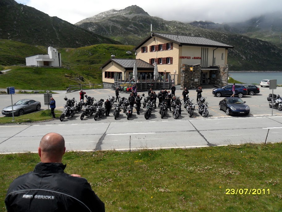 Oben auf dem Gotthard-Pass wurde es dann wieder etwas feuchter und deutlich kühler, aber auch auf der Fahrt zurück ins Hotel reichte das nicht aus, unsere Begeisterung zu dämpfen. Bei der abendlichen Abschiedsfeier wurde einstimmig beschlossen, das Angebot unsere englischen Freunde anzunehmen und das Treffen 2012 in England auszurichten, worauf sich natürlich alle jetzt schon freuen.