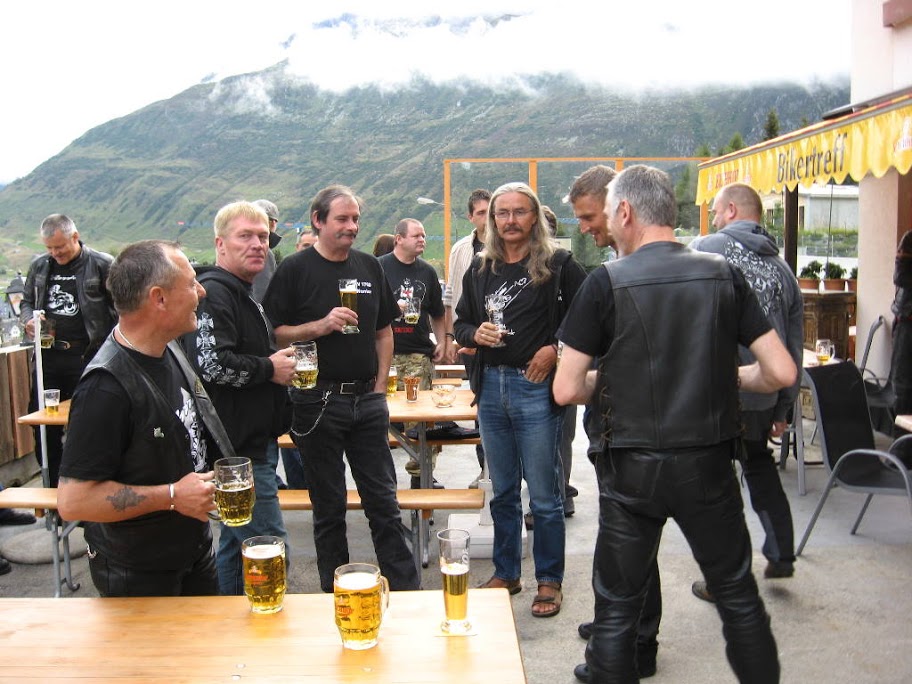 Nachdem die letzten Treffen überwiegend in der Mitte und im Norden Deutschlands stattfanden, haben wir diesmal das Angebot unserer beiden Schweizer Warriors angenommen, das Treffen in der Schweiz auszurichten. Mit dem Bikerhotel Alpina in Andermatt, geführt von dem Bikerpaar Gabi und Sepp Trösch wurde eine ideale Unterkunft gefunden. Mit rund 30 Teilnehmern war das Haus voll belegt und es konnte bis in die Morgenstunden gefeiert werden ohne dass sich Anwohner oder andere Gäste gestört fühlten. Wie angekündigt, hatten auch unsere englischen Freunde, die seit 2009 dabei sind, den weiten Weg aus England nicht gescheut. Dabei auch wieder unser Warrior aus Schottland und einer aus Irland. Nachdem wir das letzte Mal Gäste aus Finnland hatten, war diesmal ein Warriorfahrer aus Norwegen dabei, der das Treffen mit einer ausgedehnten Urlaubstour verband. Unser Norweger war überglücklich und von unserer Truppe begeistert, da er zuvor auf der Straße noch nie einen anderen Warriorfahrer getroffen hatte.