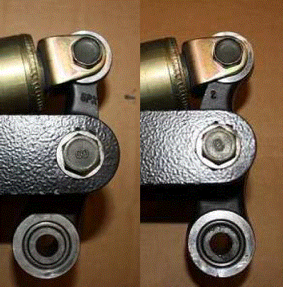 die Tieferlegung flexibel gestalten, sollte man Knochen mit variabler Länge verwenden. Für andere Motorräder gibt es Knochen mit mehreren Löchern. So etwas habe ich für unsere Maschine noch nicht gesehen. Noch eine Spur eleganter und flexibler ist die stufenlos verstellbare Variante. Diese besteht aus je einem Gelenkkopf mit Rechts- und einem mit Linksgewinde. Verbunden sind beide über einen Innengewinde-Sechskant. Durch drehen das Mittelstücks werden beide Gelenkstücke entweder nach innen oder außen geschraubt. Diese Variante gibt es von Baron (USA). Vorteil dieser Knochen, wenn ihr mal die Höhe/Tiefe ändern wollt, könnt ihr dies ohne die Schwinge ausbauen zu müssen. Bei den Knochen mit mehreren Bohrungen muss jedes Mal die Schwinge ausgebaut werden. Die oben abgebildeten Knochen habe ich für meinen Bock in