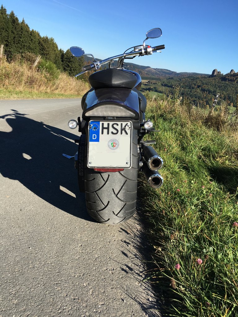Das Bike steht auf Metzler Marathon mit ca. 75% Gummi, letzter Ölwechsel vor ca. 200km. Aus meiner Sicht steht das Motorrad in gutem Zustand da, die "Gebrauchsspuren" entsprechen auf keinem Fall dem Alter. ;-)