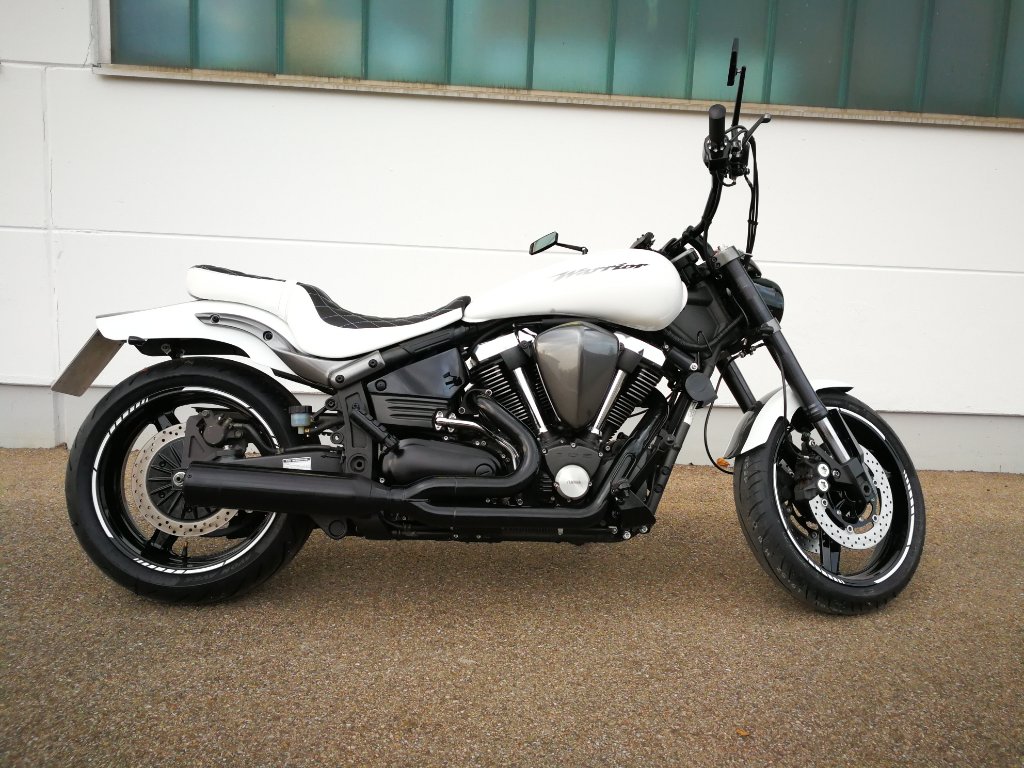 Also, Sitzbank zum Sattler meines Vertauens und in Schwarz und Weiss neu bezogen. Die Entscheidung fiel mir nicht leicht, aber im Moment bin ich mit dem Ergebnis eigentlich ganz zufrieden, da die Sitzbank Tank und Fender gut zusammen bringt.