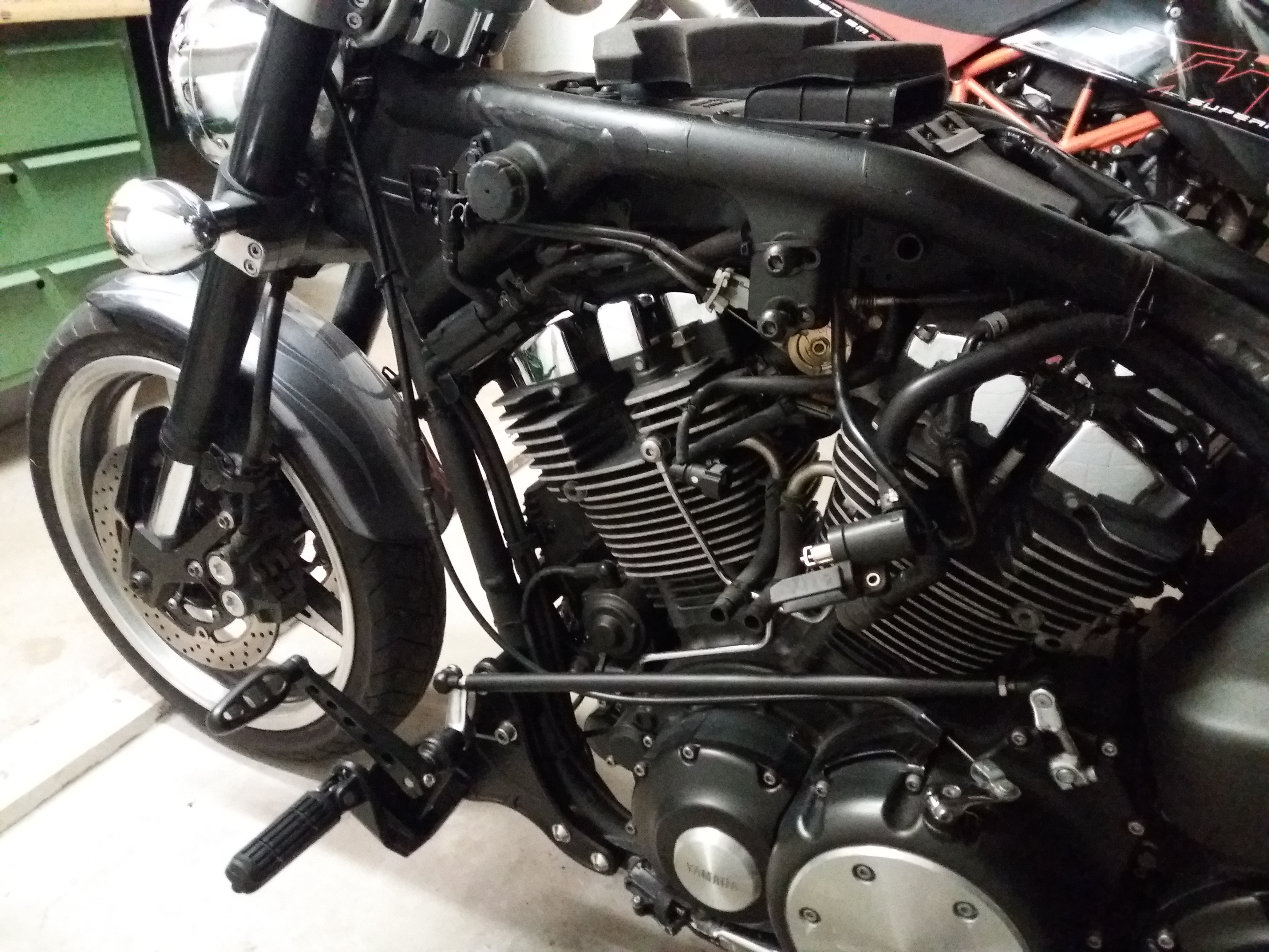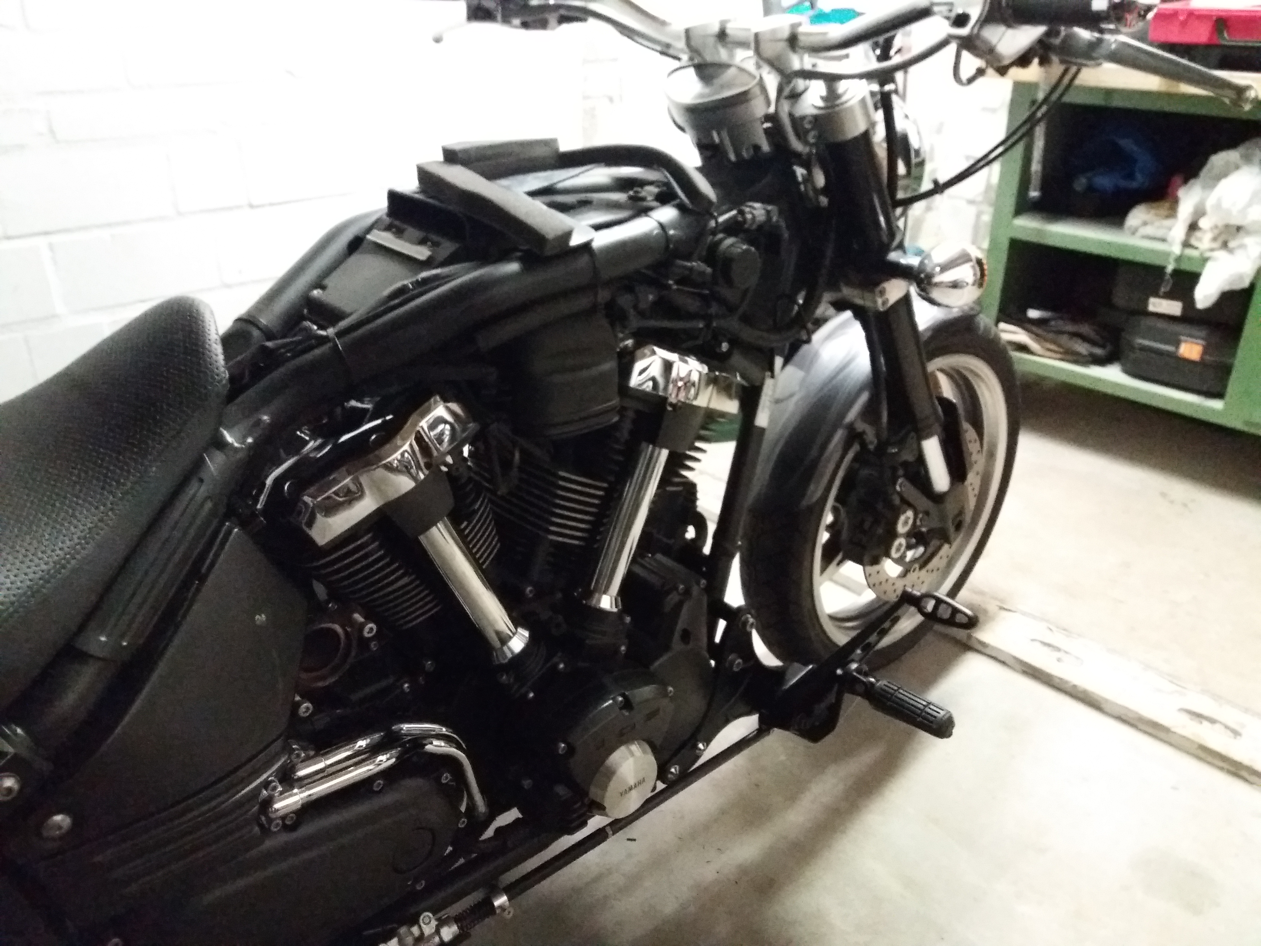 nach langer Zeit des Stillstand wollte ich mich mal wieder melden. Ich habe mittlerweile die Fussrastenanlage incl. Stopplichtschalter montiert. Stahlflex hinten ist auch dran. Mühsam ernährt sich das Eichhörnchen ;-)
