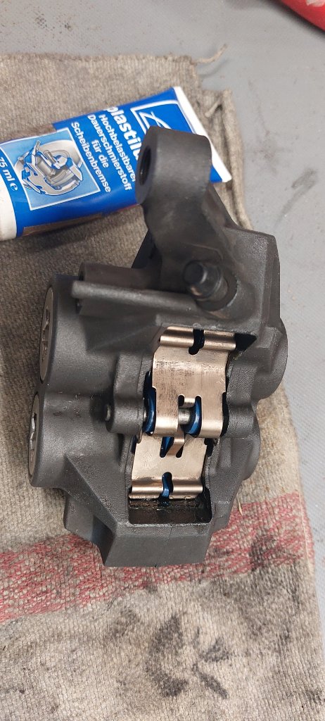 Hab jetzt gestern mal die Bremse zerlegt, um sie zu reinigen. Ich vermute mal, dass dies noch nie gemacht wurde. Zumindest nicht von mir. Also seit 2009. Die Teile gehen nächste Woche in ein Ultraschallbad. Ich war aber absolut erstaunt über die Dichtungsringe. Die sahen wirklich noch super aus. Hätte ich nicht schon welche gekauft, die scheiß Dinger kosten 50 €, hätte ich die alten wieder verwendet. Die Gabelbrücke, Gabelcover und Filtergehäuse sind auch fertig.