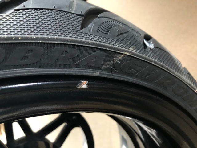 Hab gerade meine Hinterrad Felge abgeholt mit neuem Reifen und ganz entspannt in die Werkstatt gerollert. Mal kurz nicht aufgepasst und rumst fällt das Ding um und knallt gegen eine Kante von der Hebebühne