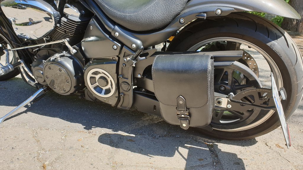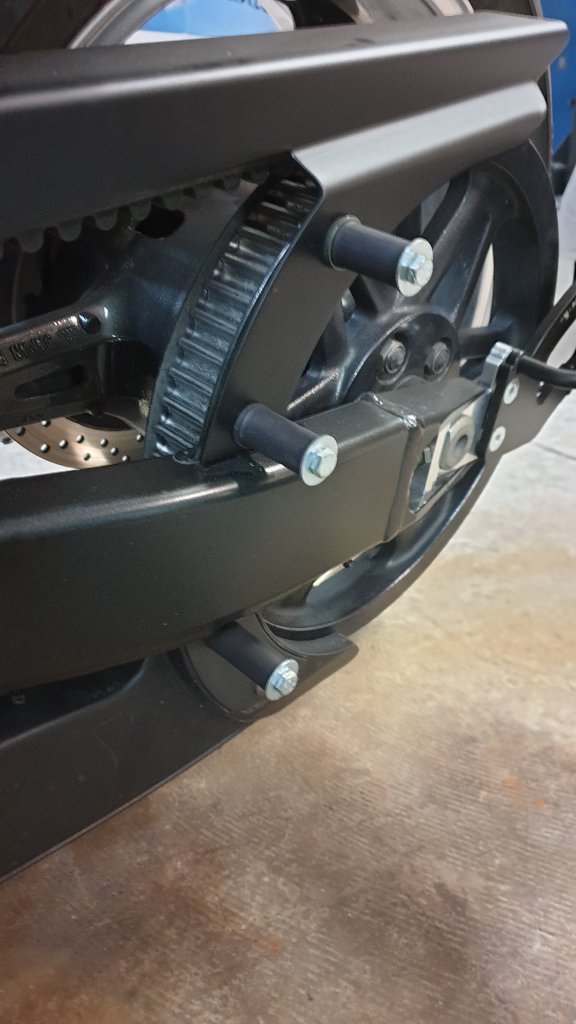 Ich hab eine Schwingentasche dran ich mach morgen mal Fotos davon, ist aber im Endeffekt mit nem Kabelbinder und zwei Schrauben verbunden die Schrauben sind am Riemenschutz dort an den Halterungen mit befestigt.