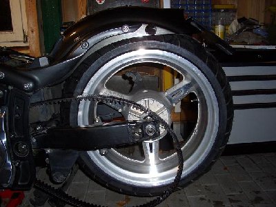 ... hier mal zum Vergleich der Fender auf meinem Bike mit originaler 6 x 17" Felge und 210er Reifen
