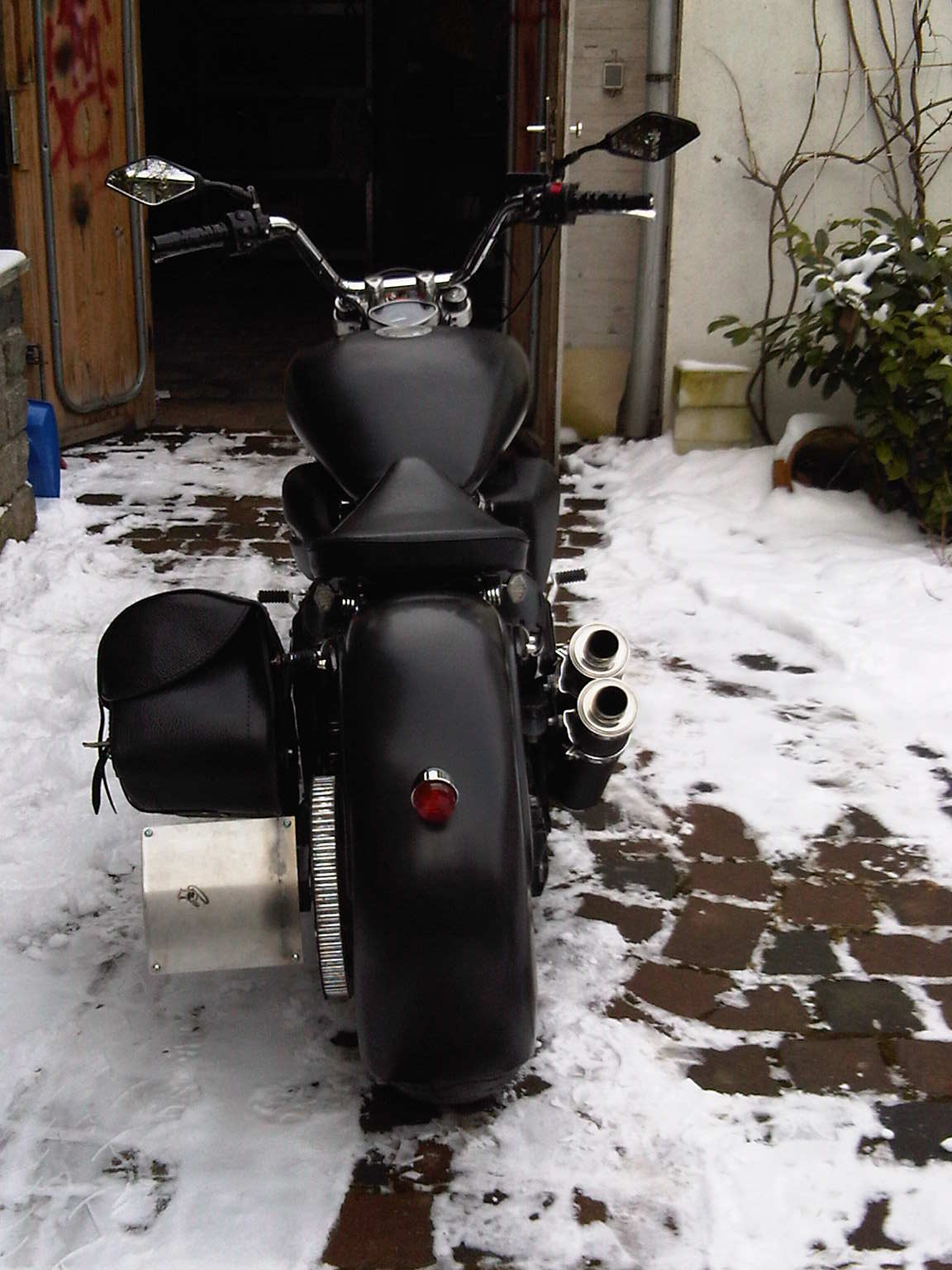 ... hier mal zum Vergleich der Fender auf meinem Bike mit originaler 6 x 17" Felge und 210er Reifen
