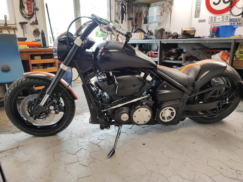 schöner Umbau. Ist das eine modifizierte Schwinge? Was für eine Reifenbreite ist das? Ich weiß, dass die Amis die OEM-Schwinge bis auf 280'er anpassen. Hat es mit dem TÜV geklappt? Die Batterieanzeige ist schön harmonisch verbaut. Gut gemacht. Sieht nach einem AirRide aus.