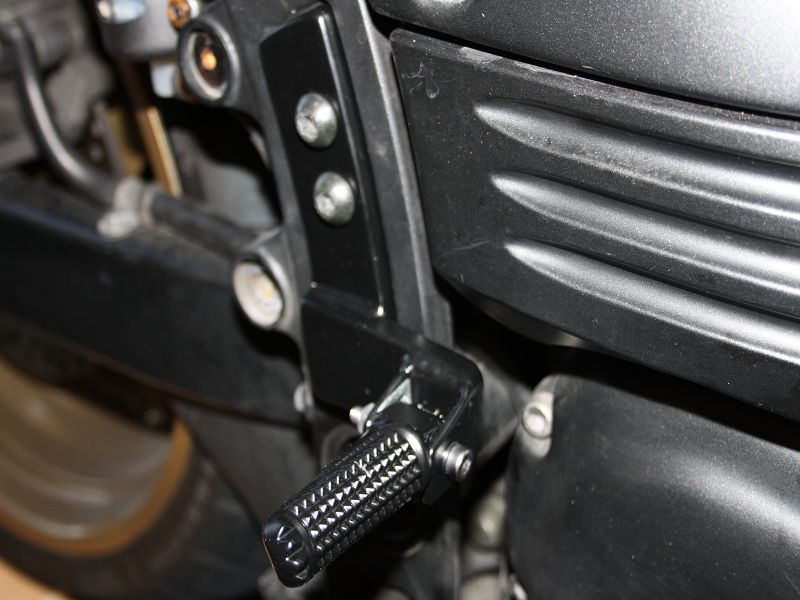 Zusätzlich habe ich die rechte Fußraste gecleant. Ich habe die Hupe, die Bremsrückholfeder und den Bremslichttaster verlegt. Als Bremslichttaster habe ich einen Drucktaster verwendet der in die Bremspumpe geschraubt wird.