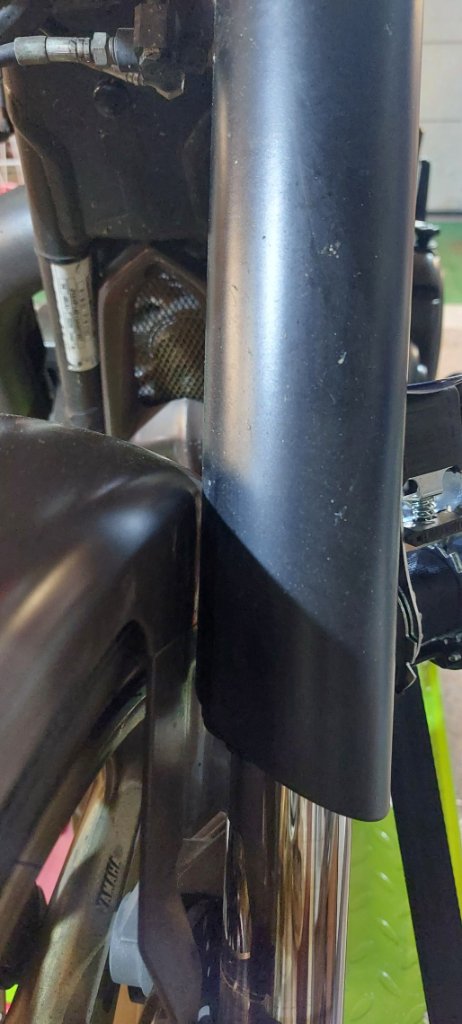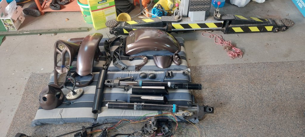 Erst mal habe ich alle Lackteile sowie die Gabel abgebaut. Die Gabelcover schleifen etwas an dem Fender. Darum habe ich die Cover etwas an der Stelle abgeschliffen, um etwas mehr Platz zu bekommen. Die Gabeln werde ich wohl auch mal zum Service bringen. Andi ist ja sehr zufrieden mit seinen jetzt. Jetzt werde ich nochmal in mich gehen, ob ich vielleicht noch das eine oder andere ändern werde, bevor ich die Teile neu lackiere. Danach wird es immer doof.